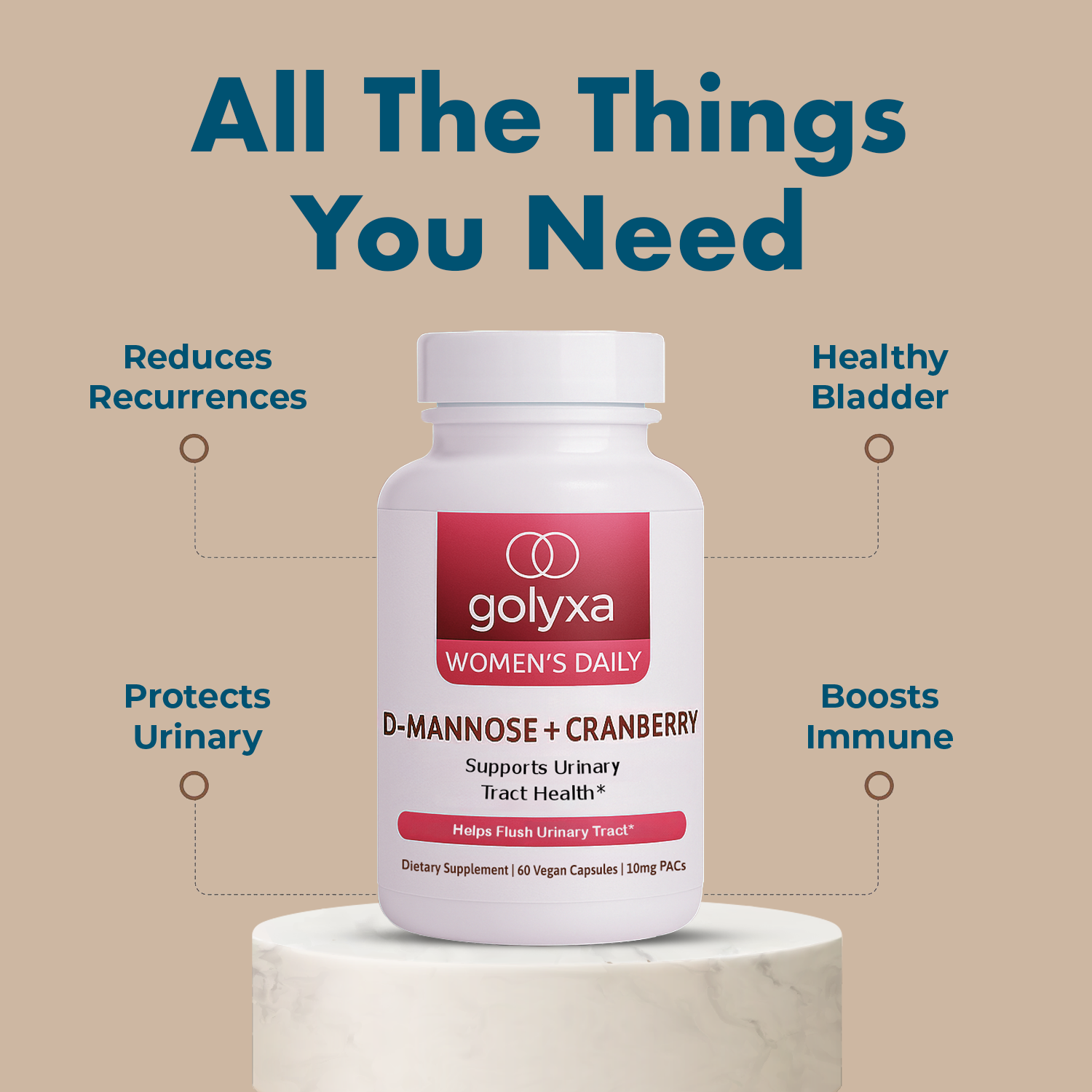 Our Golyxa D-Mannose + Cranberry was created for anyone who wants to improve their Urinary Health. Eliminate the pain, burning sensation, constant need to urinate and vaginal irritation.